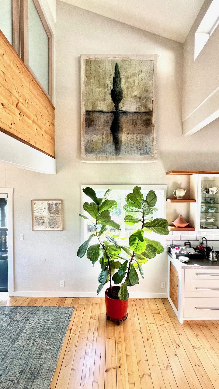 The work of Donald and Era Farnsworth possesses an understated, meditative quality that belies the sophisticated, often complex methods used in its creation. In their ongoing series of tree portraits, the Farnsworths employ a wide range of traditional printmaking and innovative digital methods to generate imagery whose effect is as singular as its techniques are diverse. For each portrait, the Farnsworths create an elegantly layered background by using chine collé to combine layers of aged Japanese paper with handmade paper – often from Magnolia Editions’ papermaking studio – and washes of color. The figure of a single tree is then hand-painted in watercolor by the artists, who may add other watercolor details as well. At various points in this process, the image is manipulated digitally to achieve precise effects of color and tone.